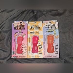 Ioni Cosmetics Soft Liquid Lip & Cheek in Apple Java, Dragon Fruit, & Apricot 0.10fl oz BNIB