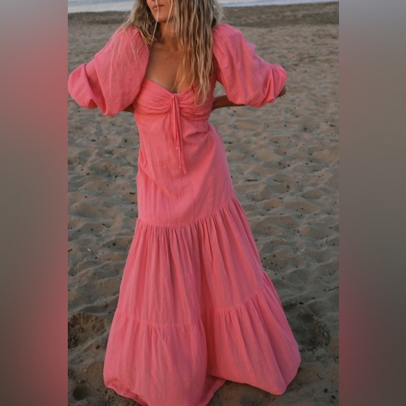 Iorane Pink Puff Sleeve Maxi Dress