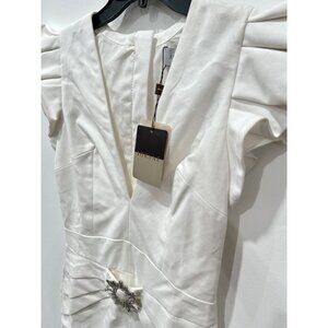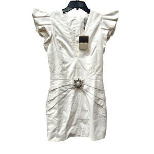 Iorane Supper Brooch Detail Ruffle Plunge Minidress, Size M NWT w/Defect