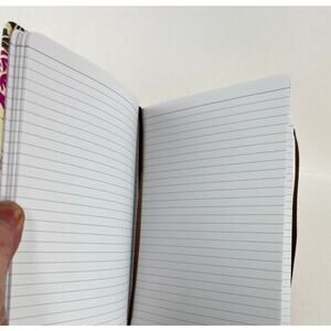 Fun floral blank lined journal with elastic and ribbon bookmark.