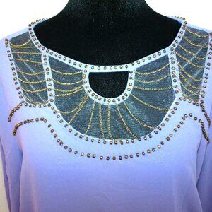 Iovposh, Purple long sleeve romper, with golden beads/fine chain details