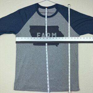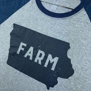 Iowa Farm Tee Shirt Adult Gray + Navy Raglan 3/4 Sleeve Tri Blend Jerzees Large