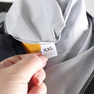 BRAND NEW in bag; size tag is XXL, however, I would say its more like an XL -- the bust looks a bit tight if you are larger in the bust.