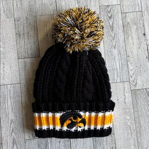 Iowa Hawkeyes Hat Black & Gold Pom Winter Cable Knit Thick Beanie NCAA NEW GIFT