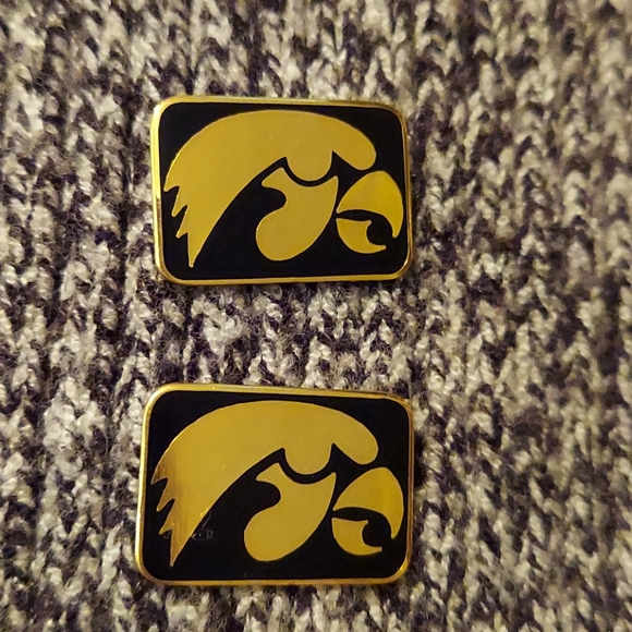 University of Iowa Hawkeye mascot tac pin bundle. Ties, jean jackets, collectors.