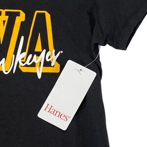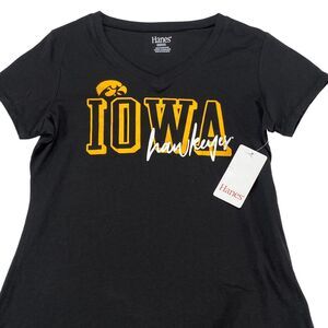 Iowa Hawkeyes Shirt Top Women's Medium Black Hanes Sports V Neck Tee Shirt
