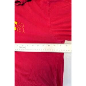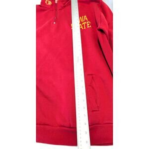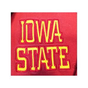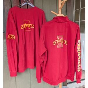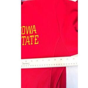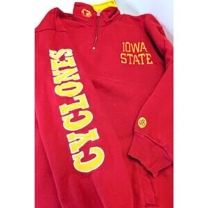 1/4 Zip Pullover: Approx. 25" pit to pit, 30.25" shoulder to bottom. Embroidered bird on collar, Embroidered Iowa State on Chest, Embroidered Cyclones spell out on sleeve, Embroidered Iowa State spell out on back. Great Condition! Red with yellow accents.