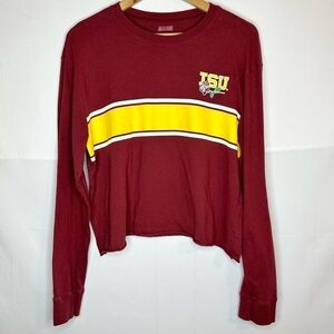 Iowa State University Tailgate Maroon Long Sleeve Cropped Shirt Rose Size Large