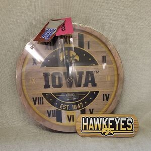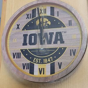 Iowa Hawkeyes Barrel Wall Clock(new) And Small Wood Plaque