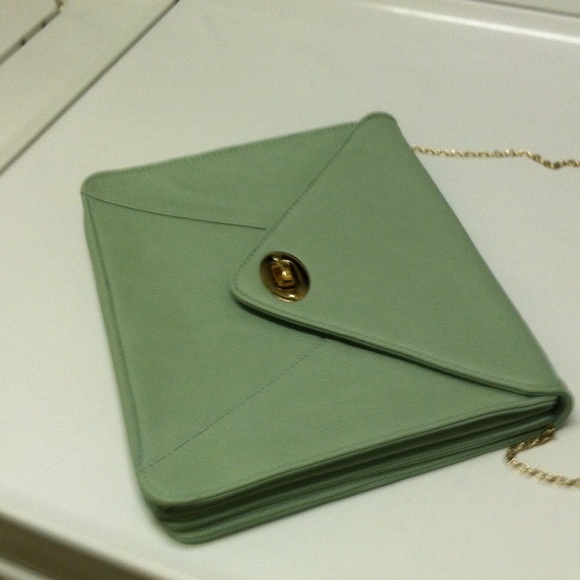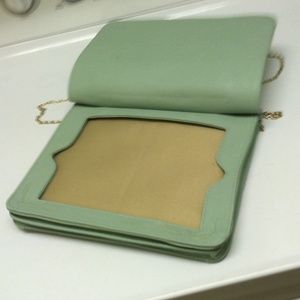 Soft turquoise faux leather I pad or tablet clutch with chain shoulder strap... brand new