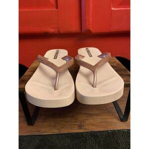 Ipanema Size 10 Rose Gold 1.5" Wedge Flip Flop Sandals Metallic Summer Shoes EUC