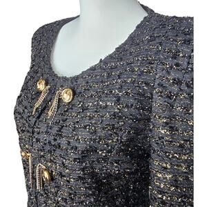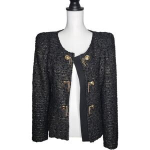 Ipekyol Tweed Sparkle Wool Blend Jacket with Chain Details Black Size 6
