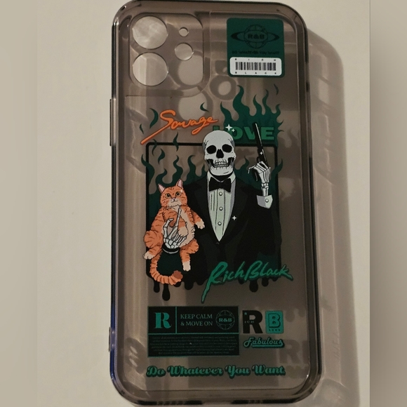 *Has Scratches* iPhone 12 Skeleton Killer and Cat Design Kawaii Cute Aesthetic Grey Clear Soft & Flexible TPU Shockproof Protective