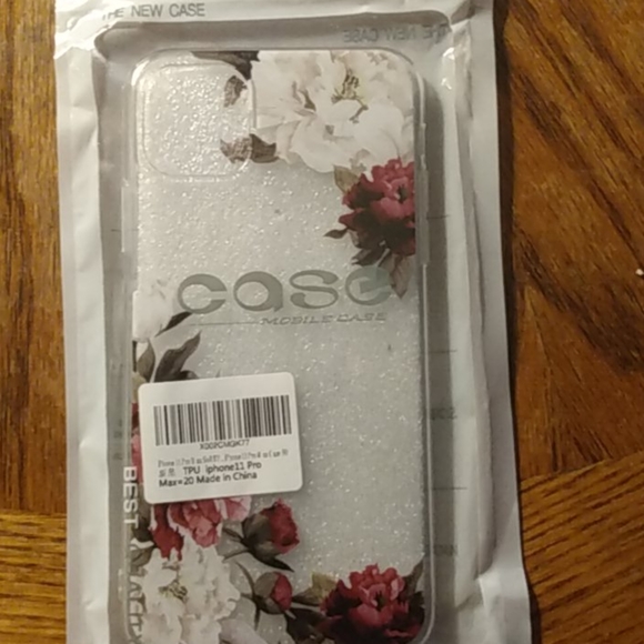 iphone 11 Pro Max Jelly case. Clear with white and burgundy flower pattern.