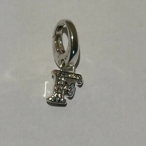 For sale charm F only. Pictures with other charms, chains and charm holder are for styling reference purposes only.