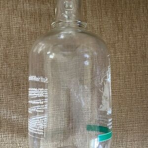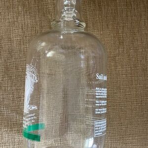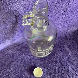 I'm the owner of this bottle and I purchased the ale in the 90's. The bottle has been displayed in a book shelf. It does have the original cap (bottle top). This is a "One Half Gallon" bottle. I loved it for the ship that is painted on the front of it. Please look at all the pictures for any flaws in the letter painting. Flaw were probably from the bottling process. In all these years I've only washed it twice - once so I could display it and once so I could take pictures. This bottle is fun item to display. I was going to fill it with sea glass and sea shells but never got around to it. There are no chips in the glass and the top screwed on securely.