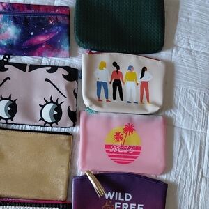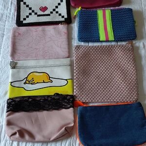 Set of colorful assorted pouches with various designs. Perfect for organizing small items. You receive all pictured bags. Smoke-free home.