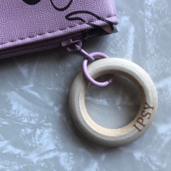 Ipsy April 2020 Purple Black Floral Wooden Zipper Pull Make-Up Cosmetic Bag