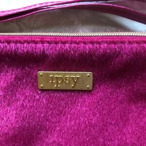 Ipsy December 2016 Red Faux Hair Zipper Make-Up Cosmetic Wristlet Travel Bag