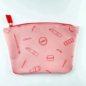Ipsy - February 2021 Welcome Glam Bag - Pink and Red Bag with Beauty Tools and Cosmetic Makeup Sketches Doodles Print - About 7" x 5"