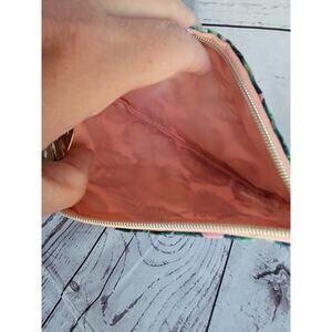 Ipsy Glam Bag August 2022 pink makeup bag with palm leaves design and leaf charm. In great like new condition