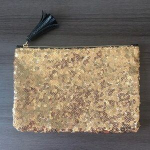 Ipsy Gold Sequin Cosmetic Jewelry Storage Bag. Tassel zipper pull. Like new condition.