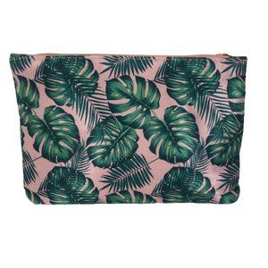 Ipsy Green Leaves Plants Pink Zippered Bag w Charm Cosmetics Makeup Pouch Summer