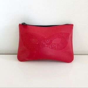 Ipsy Red Flower Mask Image Makeup Cosmetic Bag. Size small. Interior is black. Gently pre-owned, with some makeup residue on interior and some small marks on exterior, but overall in great condition. Please see photos.