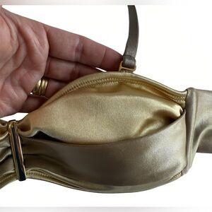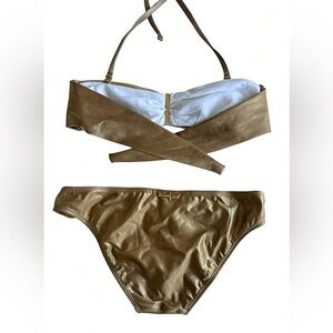 Iracema Scharf Luxury Brazilian Gold Metallic and Brown Bikini Set Sz S/P – Strapless Bandeau Top & Low-Rise Bottom – Made in Brazil – NWT