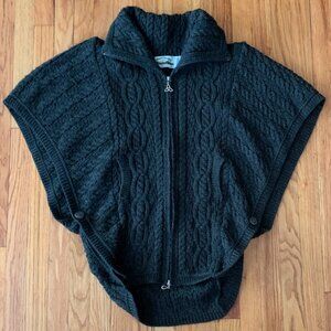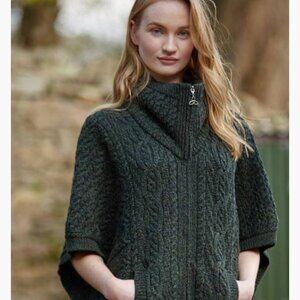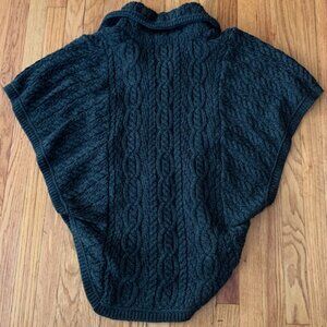 Ireland Aran Crafts 100% Merino Wool Cable Knit Poncho Sweater Jacket Green S/M