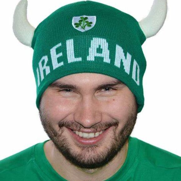 100% polyester hat is nice and cozy for any cool evenings. IRELAND is printed into the front and there is a slighted raised shamrock badge sown in above. The 2 white horns protrude out of each side like that of the fierce Vikings warrior making this hat perfect for matches or indeed anything at all.