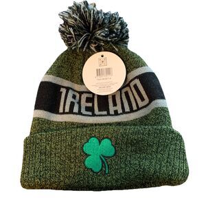 Ireland Pom Pom Beanie Lucky Green Heathered Clover Shamrock Hat Robin Ruth New