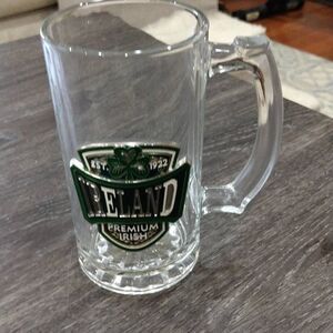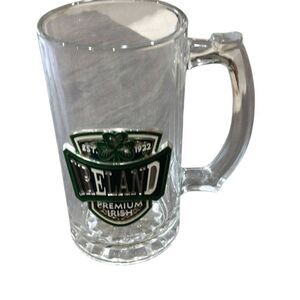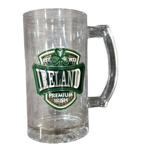 Beautiful Ireland Premium Irish 16oz Glass Beer Mug Perfect for all your Irish Party Summer Parties Heavy leaded feel, metal Irish front.