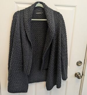 Ireland's Eye Aran Pattern Waterfall Cardigan. 100% Virgin Wool. Made in Dublin, Ireland. Sold out in this color online.