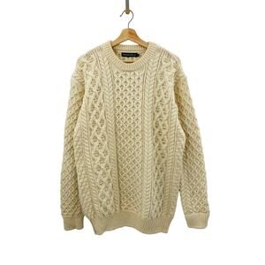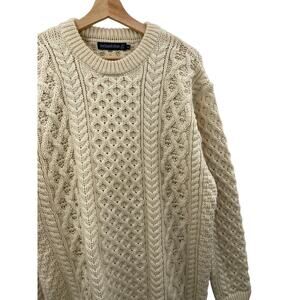 Irelands Eye XXL Cream Cable Knit Wool Crew Sweater