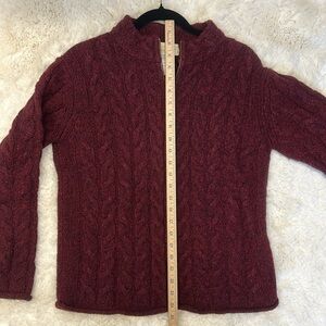 IrelandsEye Irish Knitwear Lambswool and Silk Sweater Maroon Full Zip Size S Lux