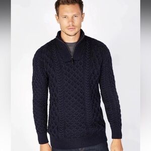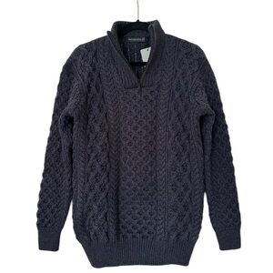 IrelandsEye Men’s Dromore Aran Irish Fisherman Sweater Wool Navy Large New