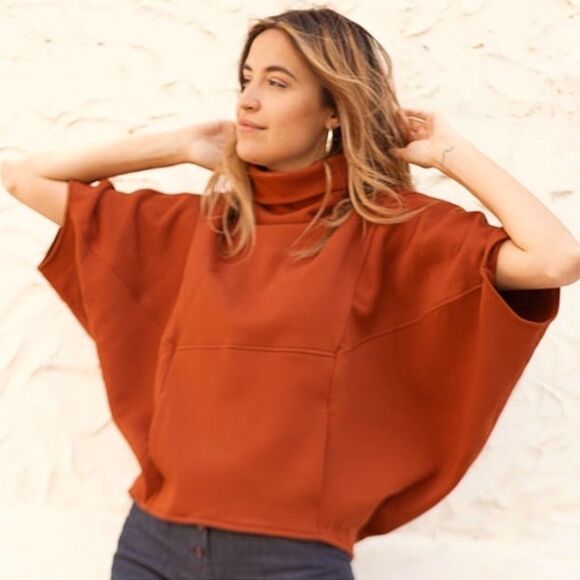 Irema Slow Fashion Cocoon High Neck Sweatshirt In Brick S