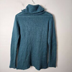 Irene Van Ryb Size L Mohair Blend Cowl Neck Teal Fuzzy Sweater Women's