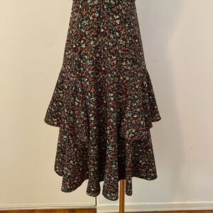 Irene de Nouvelle Black Floral Layered Midi Dress Size Small