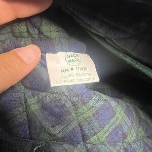 Selling an Irene's Quilts Rare Blue and Red Quilted Applique Fabric Backpack. It measures 12" (h) x 12" (w) x 4.5" (d), it has a top carry handle, drawstring and velcro flap closure, an inner pocket, and an attached lobster claw clasp on the inside. It's in Great Condition!