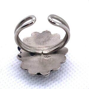 This adjustable vintage ring features a stunning abalone shell set in a silver-tone scalloped bezel. Its adjustable band ensures a comfortable fit, making it a stylish accessory for various occasions. The natural iridescence of the abalone shell adds a unique touch to any outfit.