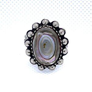 Iridescent Abalone Shell Silver-Tone Metal Adjustable Band Ring Size 6.25 VTG