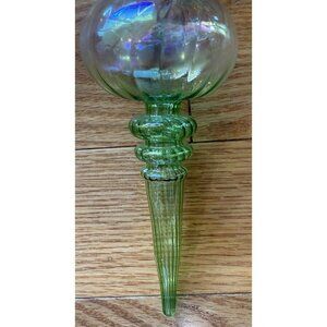 Iridescent Art Glass Finial Ornament 8” Blown Glass Ribbed Vintage