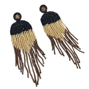 Iridescent Black Rice Beads Chandelier Earrings Bohemian Ear Jewelry Boho
