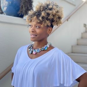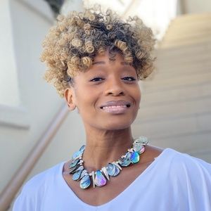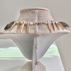 Iridescent Blue Shell Beaded Necklace w/ Tan Shell Pieces