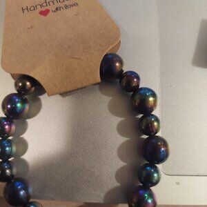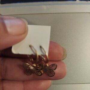 These are great accessories ro complete a denim or black outfit. The bracelet is iridescent beads with 2 gold beads to switch it up a bit. It is paired with a cute pair of gold butterfly earrings that move . Earrings are not 10 or 14kt, they are fashion jewelry. Wear them together or to compliment 2 different outfits.