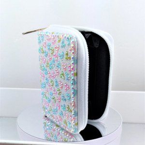 Iridescent Clear Acrylic Rhinestone Bling Hearts and Dots Women's Wallet