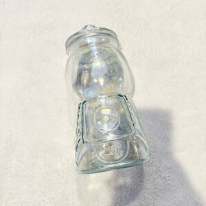 Never used. Jar is shaped like a gumball machine and has a 25-cent price label on the front.