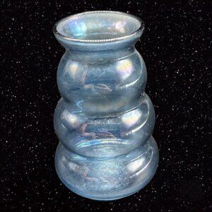 Iridescent Cobalt Blue Flint Glass Blown Vase Decoration Art Glass 3”T 1.5”W.